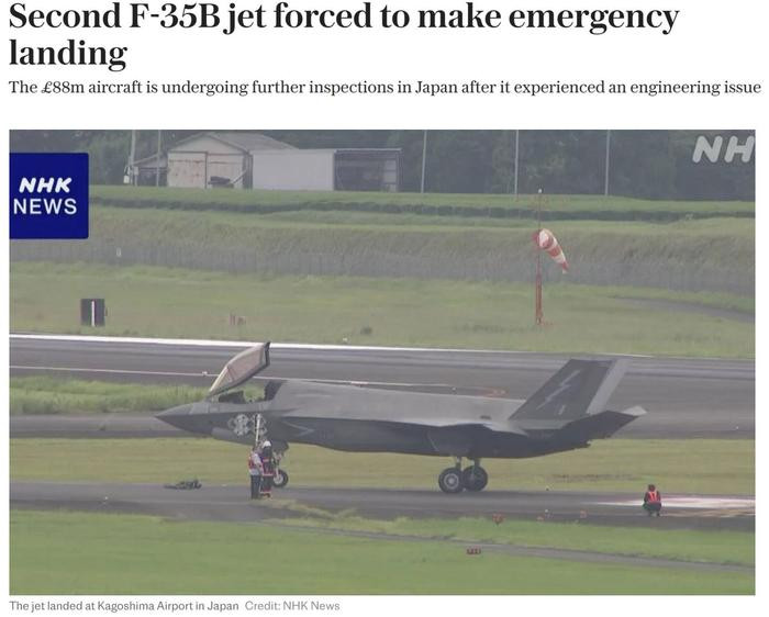根据日本国土交通省鹿儿岛机场事务所发布的消息,当地时间10日上午11时30分左右,一架未提前报备的英国军方F-35B隐形战机因为设备故障在鹿儿岛机场紧急着陆。